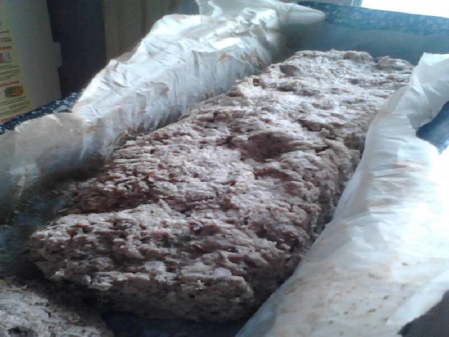 A liszteket, por állagú hozzávalókat kimérve öntsd egy dagasztótálba, sózd, majd keverd hozzá a felfuttatott élesztőt. Sosem nyúlok bele kézzel, mert nagyon ragacsos, mindig kézi mixerrel dolgozom, méghozzá a dagasztó fejekkel (az egyik mellékelt képen látható a kész, kikevert tészta, a kép valamennyire visszaadja a kenyér ekkori állagát). Amikor már homogén lesz a massza, akkor bélelj ki egy kenyérsütőformát, vagy tepsit sütőpapírral, és borítsd bele maradéktalanul. Ilyenkor már belenyúlok, mert némileg meg kell formázni. :)