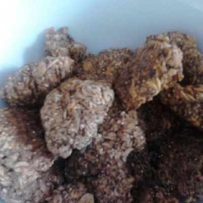 El tudok képzelni benne némi étcsoki darabokat, kókuszreszeléket, vagy kakóport, gyümölcsöt (málna?), ha nem diabosan készítjük, akkor egy kis aszalt gyümölcsöt is.