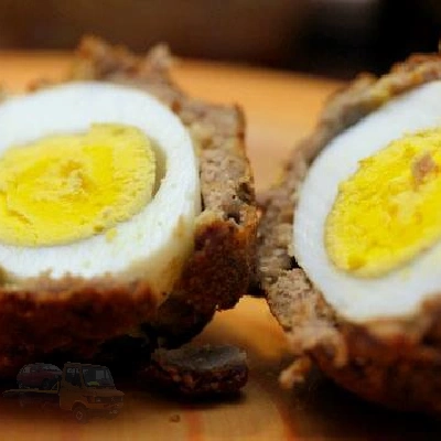 A húst lapogasd szét egy folpackban a tenyereden, tedd a közepére a tojást, egyengesd körbe a hússal,