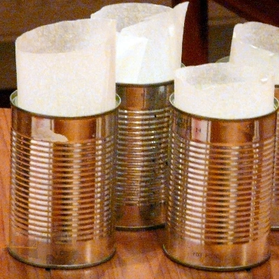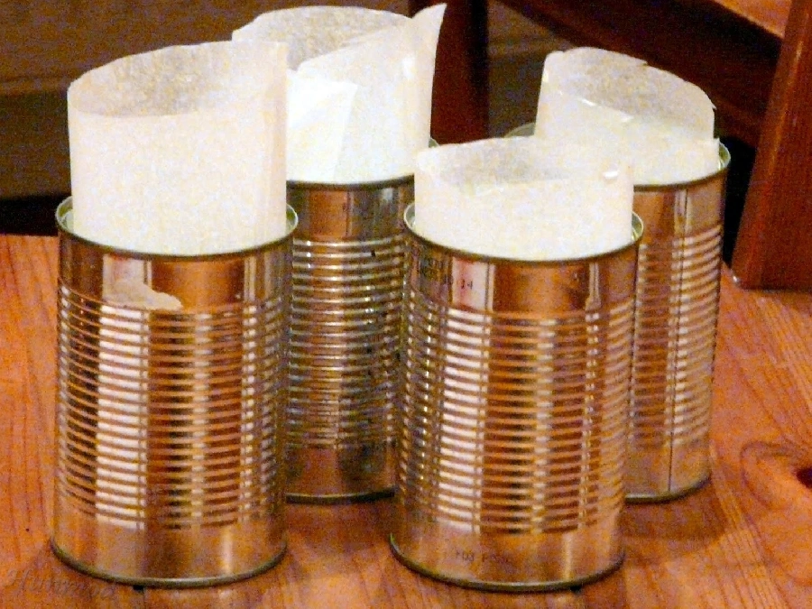 Langyos helyen 30 percig kelesztettem. Amíg kelt 4 konzervdobozt kibéleltem sütőpapírral, úgy, hogy az aljára külön kört vágtam, az oldalánál pedig túlért a papír.