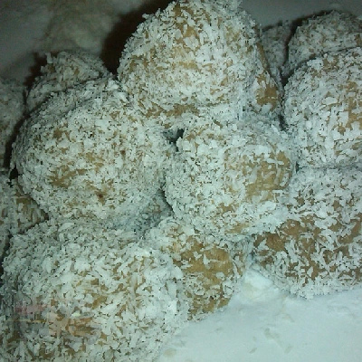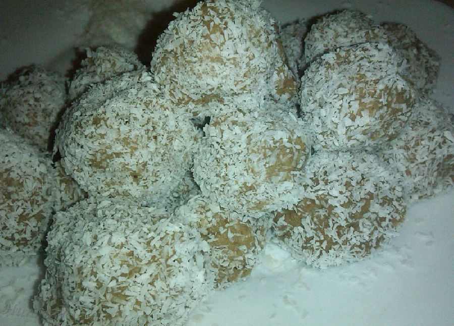 Apró golyócskákat gyúrok belőle, amiket a kókuszreszelékben forgatok át.