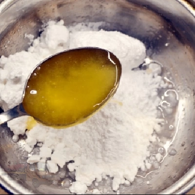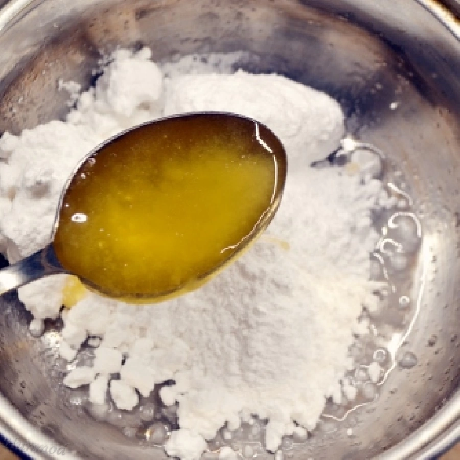 1,A zselatint egy tálba tesszük és hozzáadunk 3 evőkanál vizet.