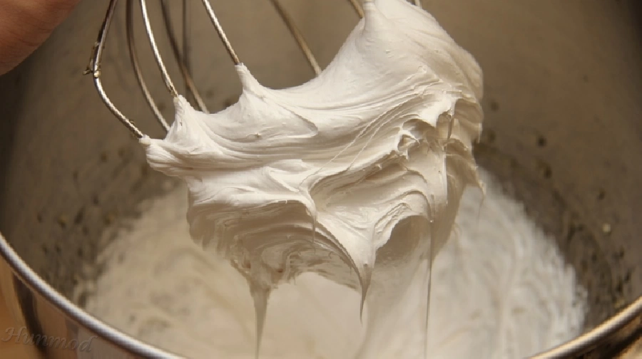 4,majd folyamatos keverés mellett hozzácsorgatjuk a maradék szirupot. Folytonos keverés mellett fogjuk látni, hogy egyre fehérebb masszát kapunk. Kb. 6 perc után nagyobb fokozatra kapcsolva még 2-3 percig keverjük. Amikor hófehér ragacsos, nyúlós masszát kapunk, ami elkezd "felkúszni" a habverőre, akkor lesz jó az állaga.